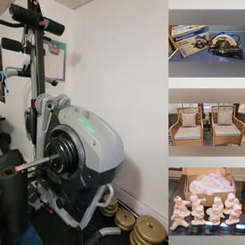 This online auction features ping pong table, exercise equipment, Blue Mountain pottery, small kitchen appliances, vintage books, bedroom furniture, tripods, computer accessories, desk & chair, printer, TV, binoculars, Pendelfin collection, art glass, teacup/saucer sets, puzzles, games, sewing machine, wheelchair, snowshoes, Thom Thomson print, power & hand tools, Snow Babies, rattan furniture, garden art, garden pots, lawnmower, patio furniture, garden tools, BBQ and much, much, more!!!